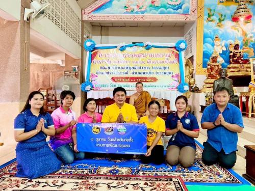 โดยร่วมกันบุญเพื่อความเป็นสิริมงคล เนื่องในวันคล้ายวันก่อตั้งกรมการพัฒนาชุมชน ครบ 63 ปี พร้อมถวายปัจจัยแด่พระภิกษุ และปลูกผักสวนครัวเพื่อสร้างความมั่นคงทางอาหาร ณ วัดป่าสนามชัย หมู่ที่ 9 ตำบลโพธิ์ไทร อำเภอพิบูลมังสาหาร