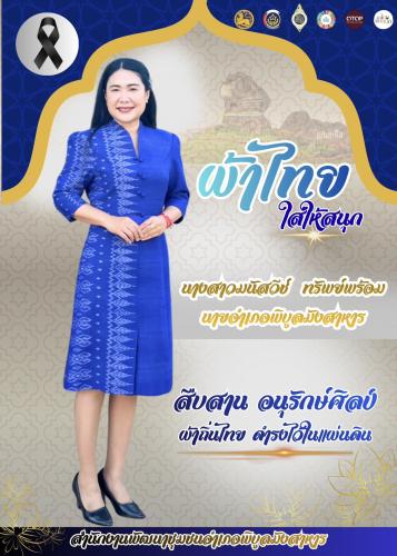 สำนักงานพัฒนาชุมชนอำเภอพิบูลมังสาหาร ขอเชิญชวนร่วมสืบสานพระราชปณิธานงานผ้าไทย และอนุรักษ์มรดกแห่งความภาคภูมิใจ ด้วยการสวมใส่ผ้าไทย