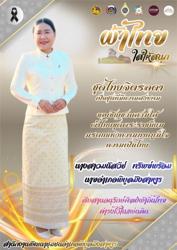 นางสาวมนัสวีช์ ทรัพย์พร้อม นายอำเภอพิบูลมังสาหาร เชิญชวนสวมใส่ชุดไทยพระราชนิยมทั้ง 8 แบบ เพื่อเป็นการอนุรักษ์และเผยแพร่เอกลักษณ์ความเป็นไทยอันงดงามให้คงอยู่สืบไป